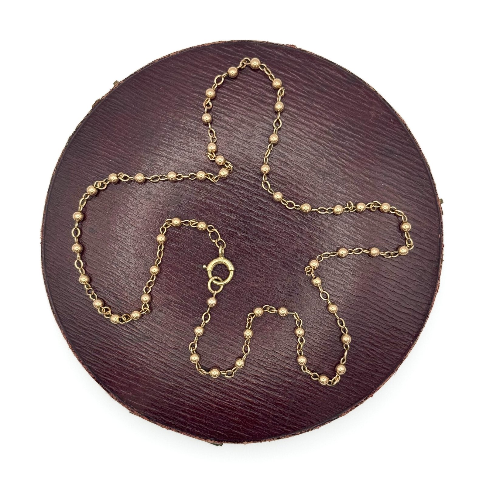 Each 3mm sphere glows with that signature rosy warmth, the chain draping effortlessly at a featherlight 5.8g. Perfect for layering or wearing alone, it’s the quiet luxury you’ll never take off.