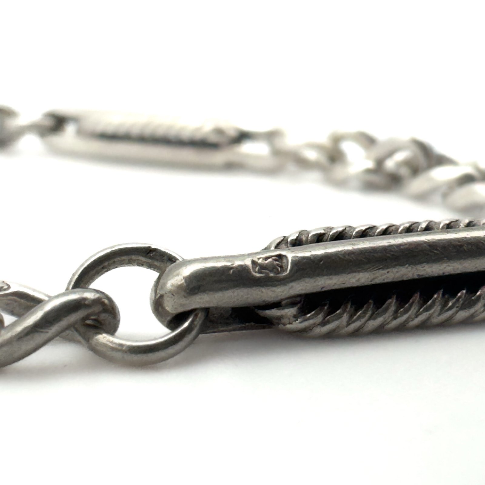 Patterned trombone and curb links.