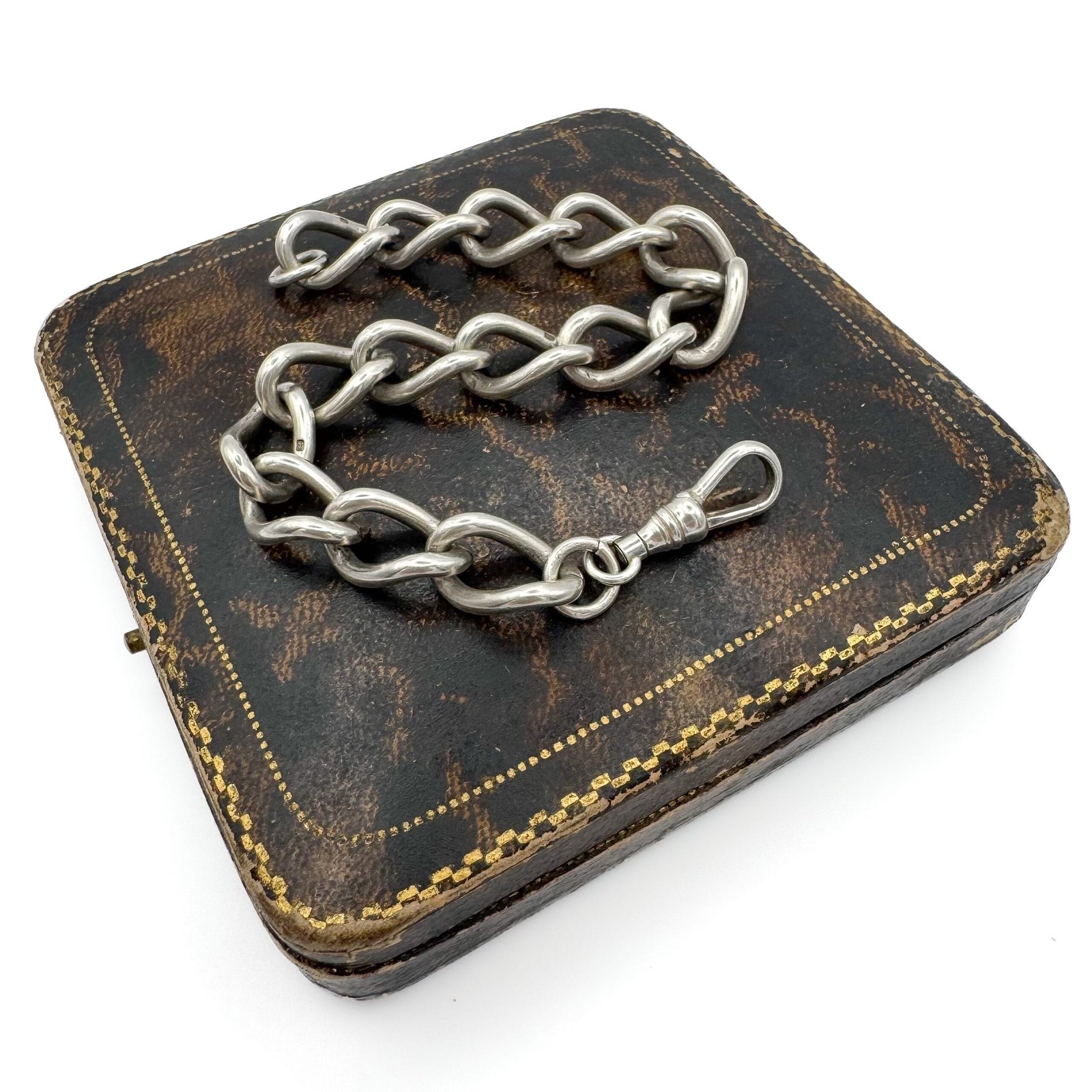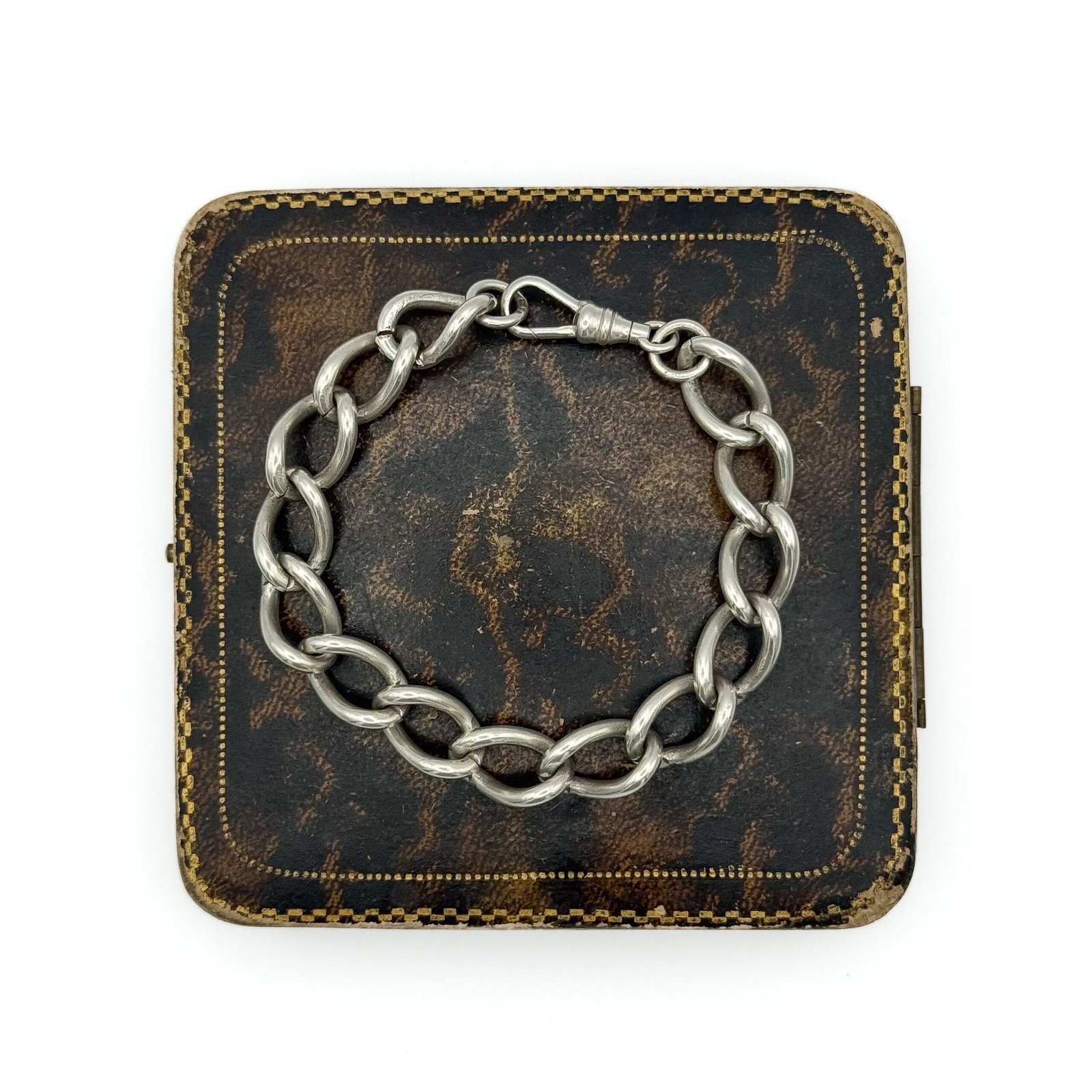 Each 10mm link is chunky and hand-forged, the silver patina deep and honest. At 26g it sits solid on the wrist yet moves with surprising ease. Perfect for stacking or standing alone as your everyday look.