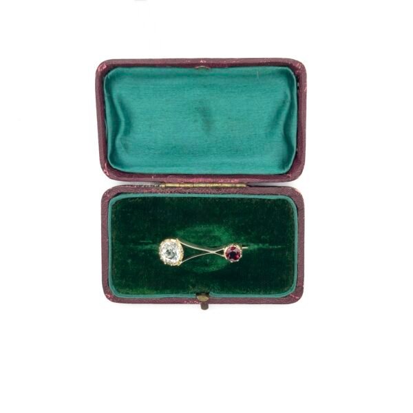 Modelled with a faceted Rock Crystal and a Garnet in high carat gold collet settings this brooch is a wonderful example of this well known and sort after jewellery.