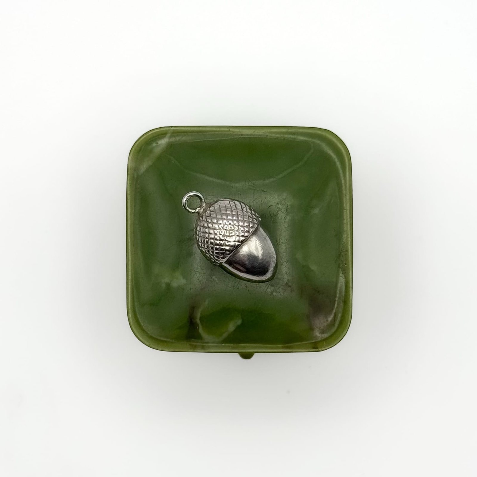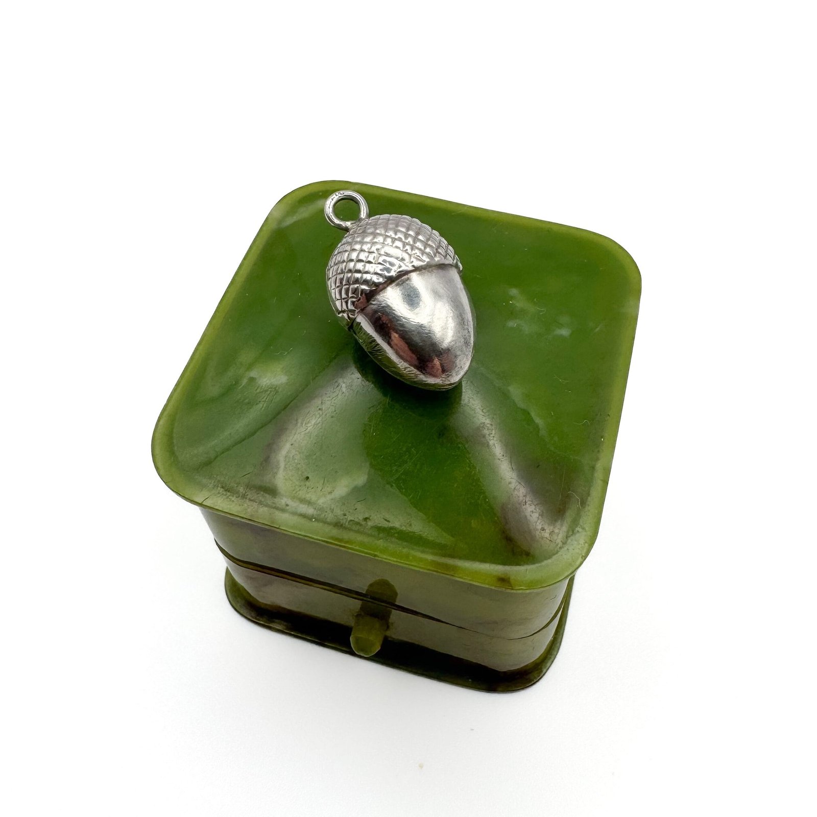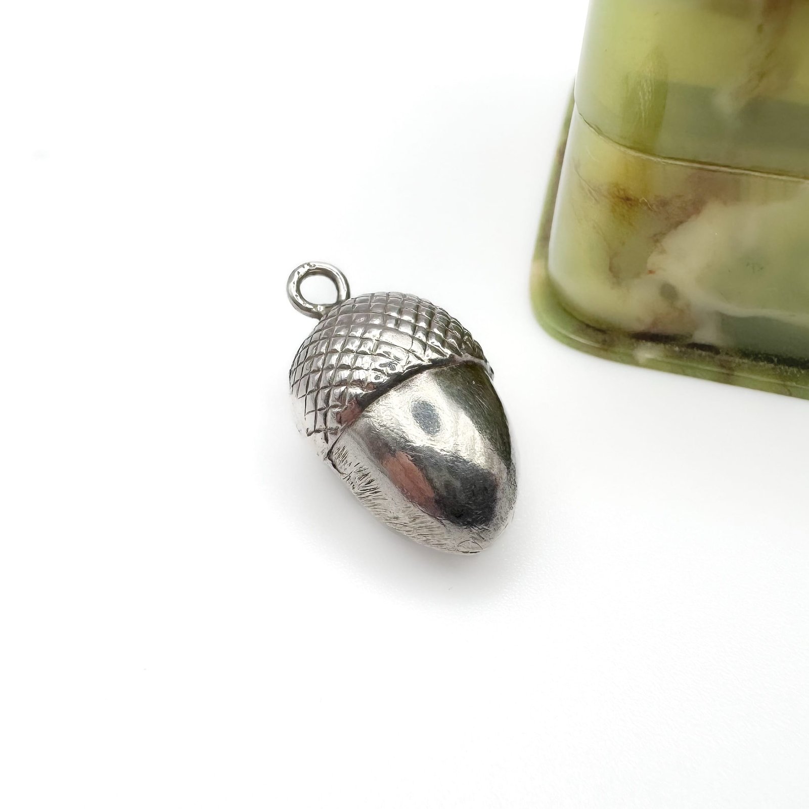 This particular Acorn charm was made at the end of the 19th century from sterling silver and is hollow.