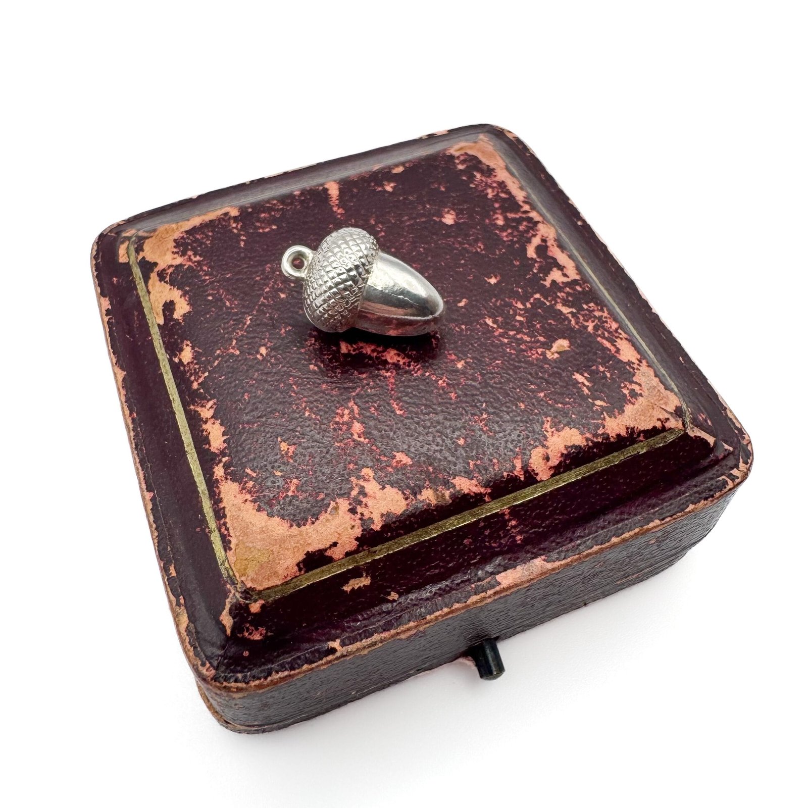 This particular Acorn charm was made at the end of the 19th century from sterling silver and is hollow.