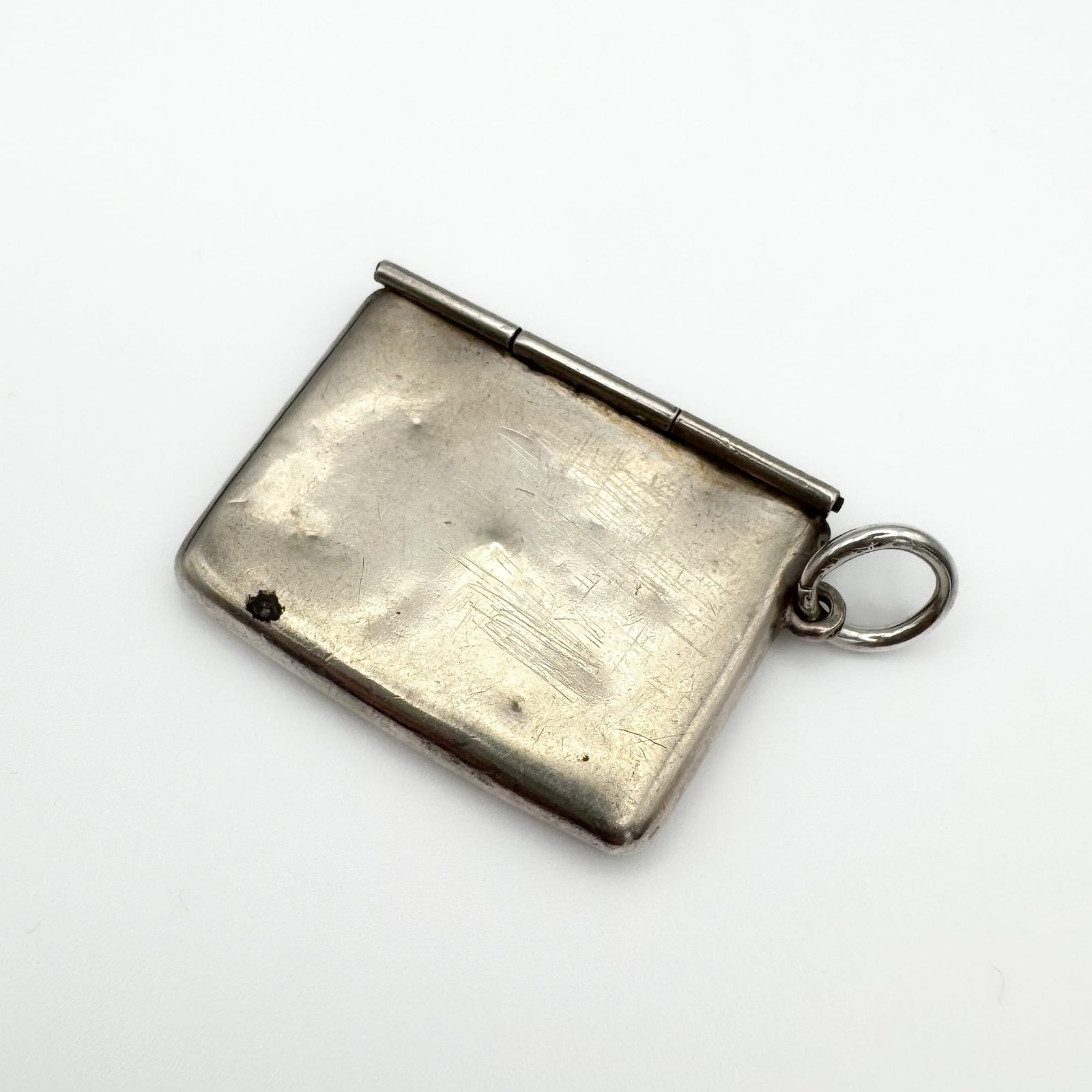Antique early 20th century enamel silver stamp case, a pocket-sized delight.